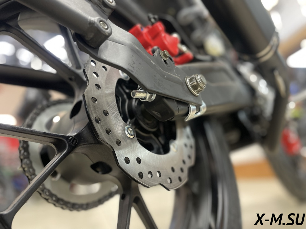 Пластик используется очень прочный и распространенный, что делает его максимально возможным к обслуживанию. Лапка тормоза так же фрезерованная, алюминиевая. Самая легкая и прочная приводная цепь уже установлена!