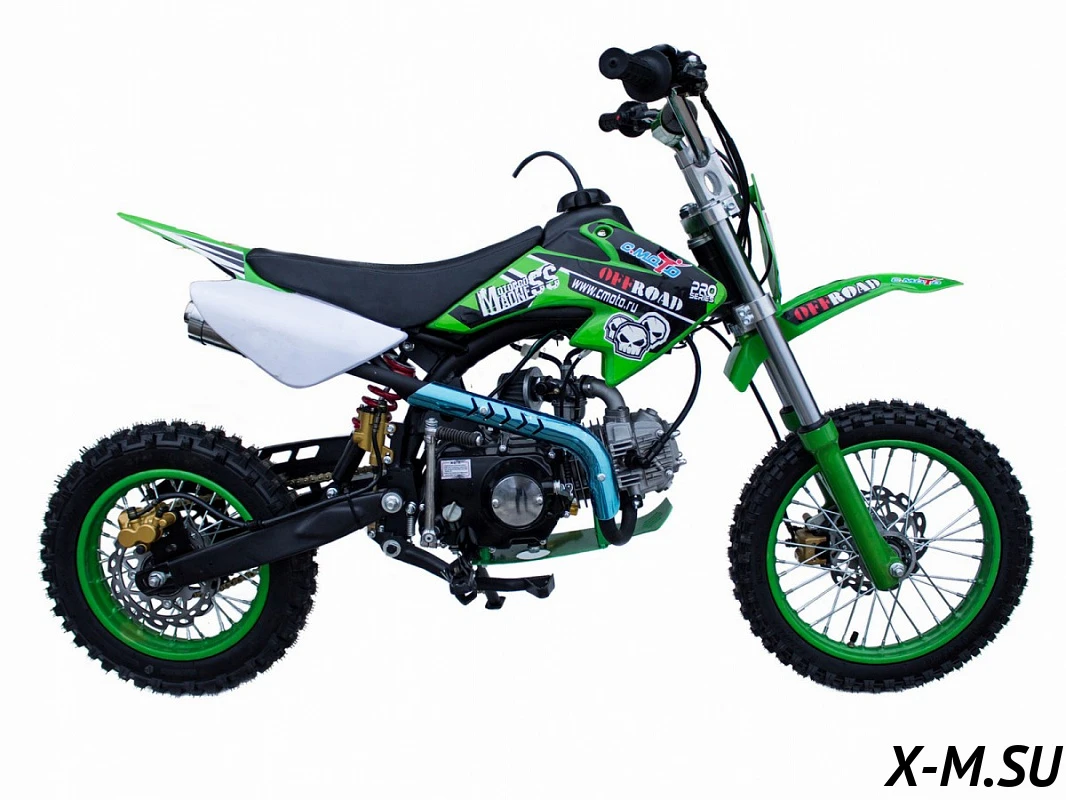 Мотоцикл для активных людей, дарящий свободу и экстремальные ощущения. Оборудован 4-тактным двигателем с воздушным охлаждением, объемом в 125 см. куб. Отлично подойдет для тех, кто хочет попробовать себя в мотокроссе, также существует много различных дисциплин для этого класса мотоциклов. Качество подвески на высшем уровне, легко справляется с гребенкой, смягчает любые удары. Пит-байк - это спортинветарь и не требует прав и регистрации.