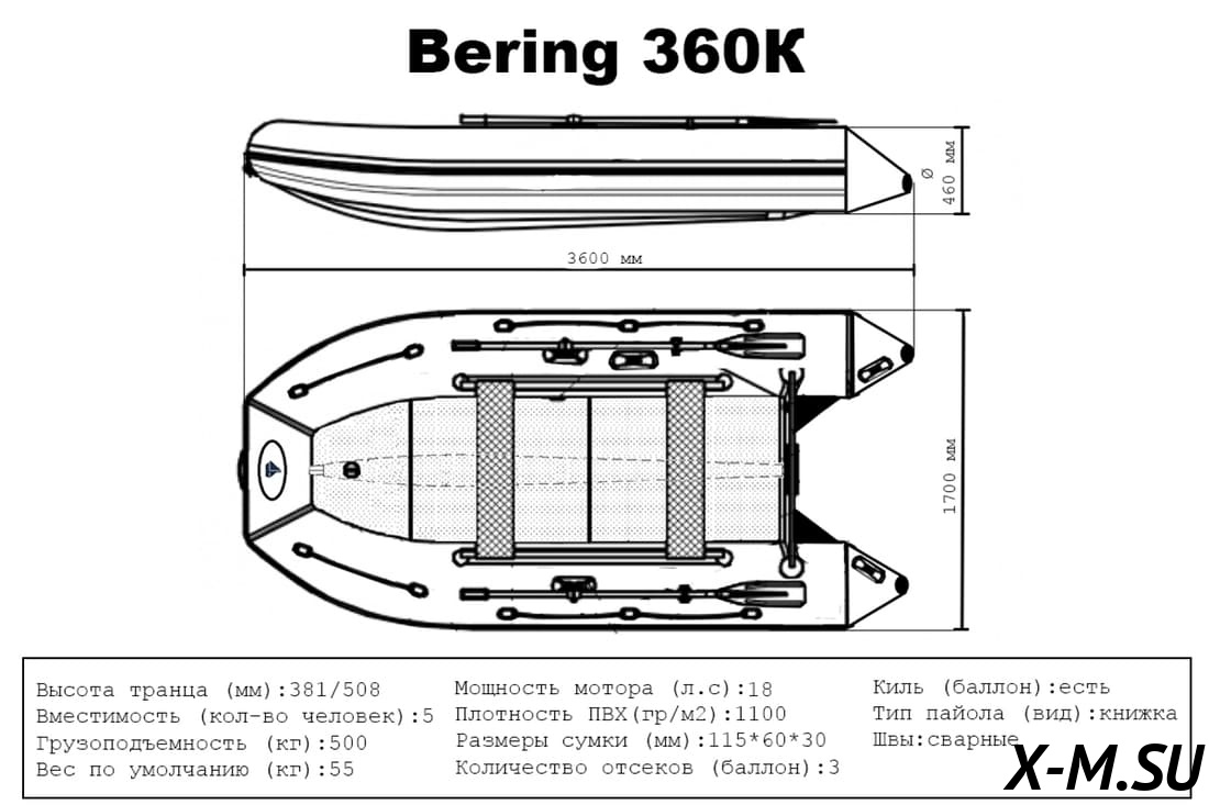 Количество надуваемых отсеков: 3 + киль